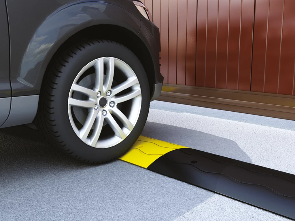 «Лежачий полицейский» (обеспечивает легкость прокладки электропроводки между столбами — без штробления дорожного покрытия; изготавливается из износостойкого искусственного каучука).